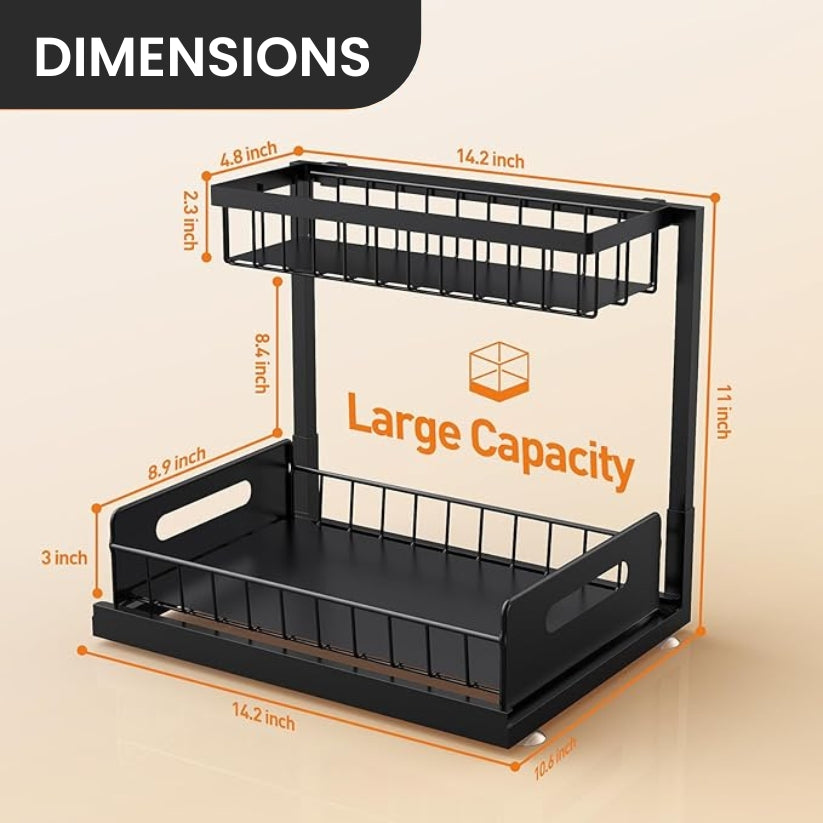 Maximize every inch of space under your sink with the L-Shaped Under Sink Organizer — the perfect solution for storing tall bottles, sprays, and cleaners without interfering with your pipes.